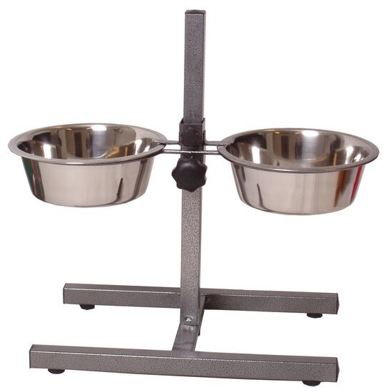 Voederstandaards voor iedere soort hond in elke levensfase. Deze handige verstelbare dubbele voerbakken zorgen ervoor dat jouw hond in de meest natuurlijke stand en houding eet en drinkt. De r.v.s. voerbakken zijn op de juiste hoogte te stellen (gelijke hoogte van de maag) middels de bijpassende hamerslag standaard. Eten in de normale rechtopstaande houding van de hond bevordert de spijsvertering en laat de hond in een meer ontspannen houding zijn voeding tot zich nemen. Door de bakken op gelijke hoogte van de maag te zetten neemt het ‘schrokken’ af. ‘Schrokken zorgt voor maag- en darmklachten!
