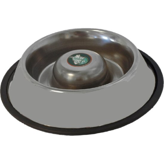 RVS Slow Feed hondenbak met anti-slip rand, wat voorkomt dat uw hond zal gaan schrokken.