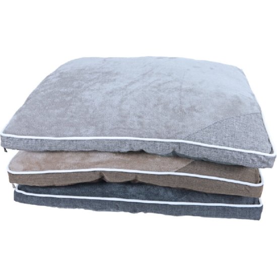 Comfortabel ligkussen met super zachte pluche bovenzijde. Voorzien van leuke details en contrasterende bies. Buitenhoes is afneembaar en uitwasbaar op handwas of machinewas 30 graden. Verkrijgbaar in grijs, antraciet en bruin. Wordt assorti geleverd.