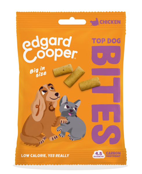 Dit recept zonder granen is caloriearm maar zit boordevol verse kip: ideaal voor kleinere en grotere honden. Je moet je dus niet inhouden als je een Bite wil geven, en nog één en nog één. Horen we daar al wow-woef wow-woef wow-woef op de achtergrond?