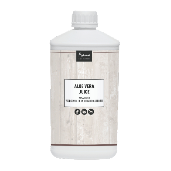 De Frama Aloë Vera juice heeft een zeer krachtige werking. Dit product is rijk aan voedingsstoffen, waardoor het ook wel een natuurlijk pleister genoemd wordt. De juice uit de bladeren van de Aloë Vera plant bevat meer dan 200 voedingsstoffen. Hieronder vallen 20 mineralen, 18 aminozuren en 12 vitamines. De plant bezit eigenschappen die de stofwisseling stimuleren, de weerstand verhogen, stressgevoeligheid verminderen en mens en dier energieker maken. De gel ondersteunt tevens het zelfherstellend vermogen van de huid. Het is daarom bijvoorbeeld ook te gebruiken wanneer uw hond een droge huid of schaafwondjes heeft. Dit product kan zowel incidenteel en acuut gebruikt worden, als langdurig. Ook geschikt voor menselijke consumptie.