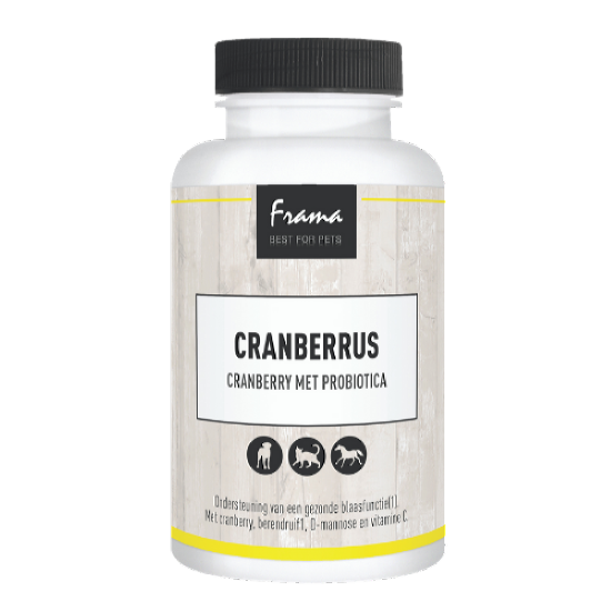 De Frama Cranberrus is een probiotica gemaakt van cranberry’s. Deze probiotica zorgt voor een goede blaasfunctie met behulp van kruiden(extracten).