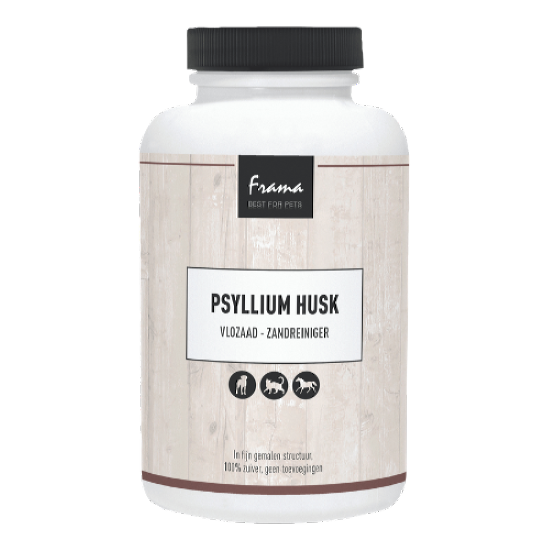 Frama Psyllium hond-kat werkt darmreinigend en zorgt daardoor voor een goede darmfunctie. Het biedt ondersteuning bij een verstoorde darm en dunne of te harde ontlasting.