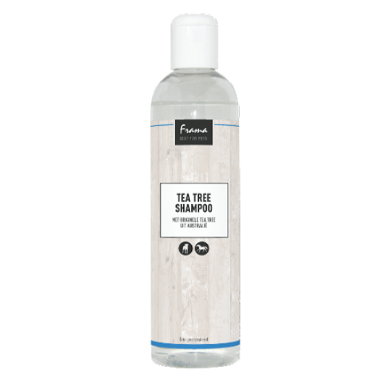 Extra verzorgende Tea Tree Shampoo reinigt tot diep in de vacht, lost zweet, vuil, mest- en urinevlekken op. Door de “Extra Schoon & Extra Glans-formule” ontstaat een mooie glans en topconditie van huid en vacht. Extra sterk ter ondersteuning van het herstellend vermogen van de huid door de toevoeging van zuivere Tea Tree Olie (wordt ook wel de wonder EHBO-olie van Australië genoemd). Toepasbaar bij de behandeling van diverse symptomen aan de huid. De shampoo helpt bij een geprikkelde, droge en schilferende huid. De Frama Best for Pets Tea Tree Shampoo is mild voor de huid, zacht in geur en mag dagelijks gebruikt worden. De shampoo bevat Tea Tree-olie en heeft dan ook die originele, karakteristieke geur. Frama Best for Pets Tea Tree Shampoo is geschikt voor honden en paarden.
