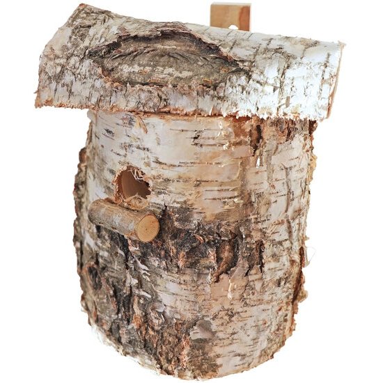 Mezenkast berken met berken dak hangbaar, puur natuurlijke look. Dit leuke vogelhuisje is gemaakt van berkenhout en heeft een berken dak. Het huisje kan door middel van een metalen haak opgehangen worden. Leuk als decoratie in elke tuin.