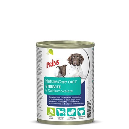 Prins NatureCare Diet Dog Struvite & Calciumoxalate is een natvoeding speciaal voor honden met blaasproblemen. Deze speciale dieetvoeding is ontwikkeld in samenwerking met dierenartsen en heeft zowel een oplossend als preventief karakter. Deze dieetvoeding is geschikt ter voorkoming van herhaalde struviet- en calciumoxalaat blaasgruis.