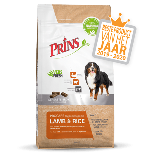 Home Honden Hondenvoer Droogvoer Geperste brokken Prins ProCare Lamb & Rice Hypoallergenic 3kg