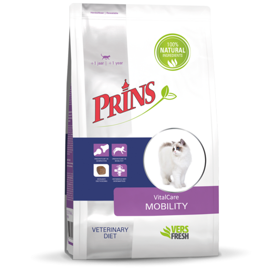 VitalCare Veterinary Diet Mobility is een krokante brokvoeding die geschikt is voor volwassen katten met gewrichtsproblemen. Gewrichtsproblemen door (osteo)artrose komt het vaakst voor. Artrose is een aandoening waarbij slijtage van het kraakbeen van een bepaald gewricht optreedt. Deze volledige dieetvoeding bevat voedingsstoffen die een positieve invloed hebben op de gewrichten en de beweeglijkheid van je kat, en bijdragen aan een gezonde huid en glanzende vacht.